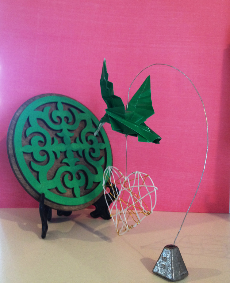 The hummingbird Posted by222leavesMarch 30, 2019March 30, 2019Posted inHand-craftsTags:central asia, handcraft, Hummingbird, sending love, travel We family traveled to overseas in the beginning of this year, and we brought back a round green souvenir (Left-hand side), it goes with the humming bird I made (Right-hand side).Sending the love towards the way we visited. Share this: Click to share on Facebook (Opens in new window) Facebook Click to share on X (Opens in new window) X Like Loading...