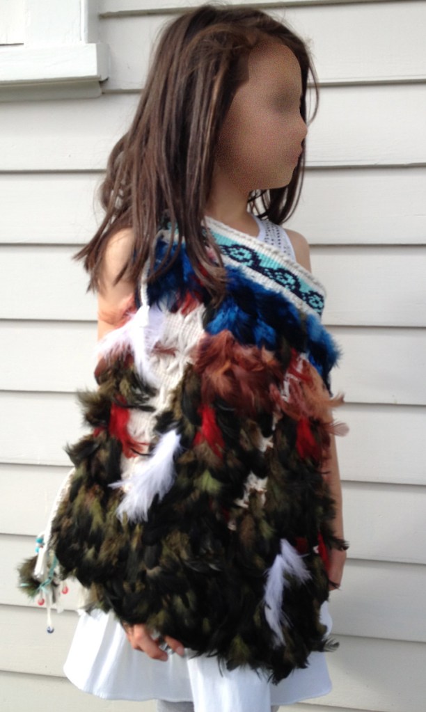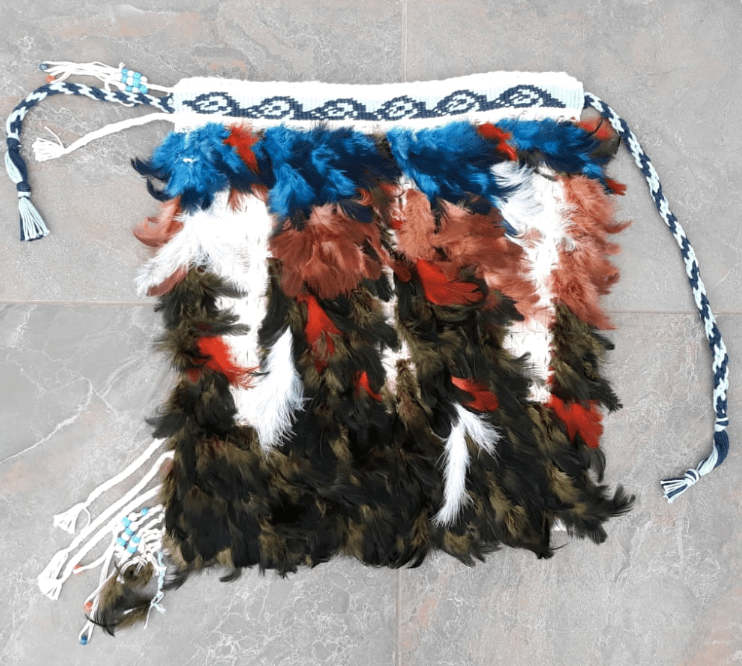 Korowai is an ancient New Zealand Maori weaving art tradition. Embedded in each piece of Korowai is a personal story and history of the weaver. Where I currently live is a beautiful country, renowned for its nature and beauty. The Christian faith has also been a part of this land, passed on from generation to generation since the 1800s. It is slowly disappearing in contemporary society. While I weaved the Korowai, the green feather is representative of the nature here and the blue feather is the sky and sea enveloping it. The red feather is representative of the blood of Jesus Christ. The white is the Holy Spirit. While the land is experiencing an increase in pollution, the spirit in the land is also becoming polluted. Only when the heart returns to Christ, the Holy Sprit will wash the land clean and pure and restore it to its formal glory. This Korowai represents my prayer for the hearts of the land to turn back to Christ.